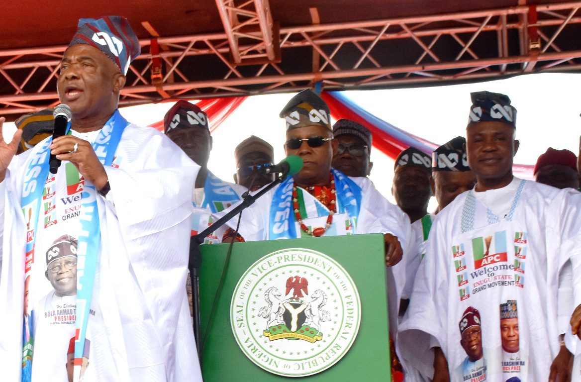 “Your Excellency, you are now the leader of the APC family in Enugu State. I am the vice-president, but the leader of the APC in Borno is Gov. Babagana Zulum.