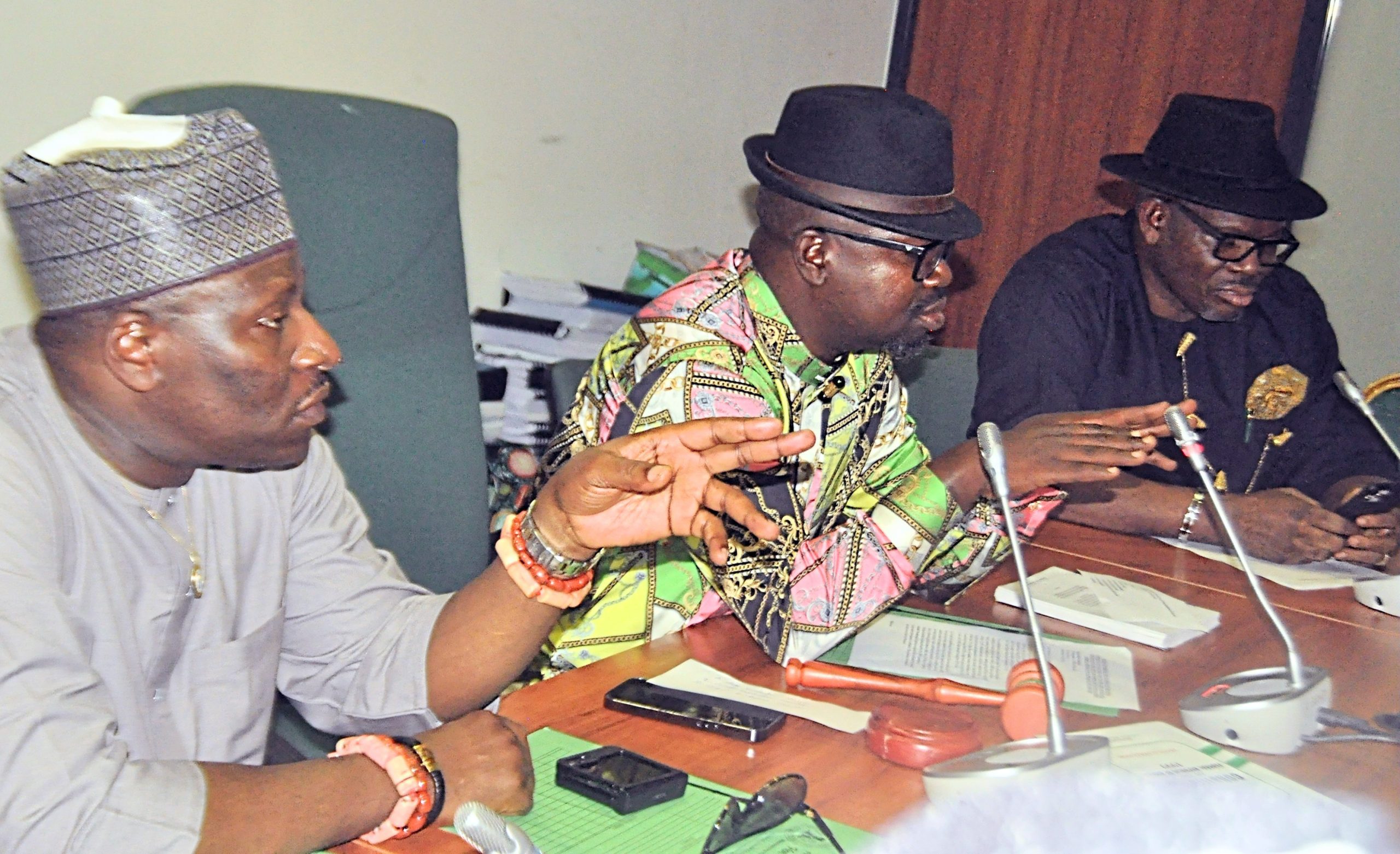 From left: Member, House of Representatives Committee on Basic Examination Bodies, Rep. Billy Osawaru; Chairman of the Committee, Rep. Oforji Oboku, and a member of the committee, Rep. Etteh Okpolupm, during the committee's meeting with Joint Admission Matriculation Board (JAMB), at the National Assembly Complex in Abuja on Wednesday (29/10/25).