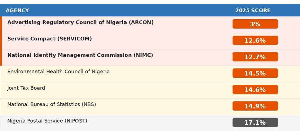 In 2024, only 10 of 39 MDAs scored above 50%, with a weighted average of 34.87%.